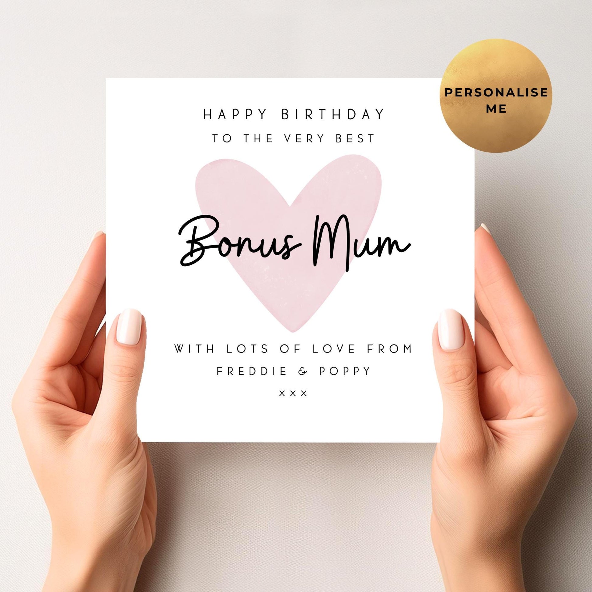 Celebrate your loved one’s special day with this thoughtful Personalised Birthday Card, uniquely designed for mums, step mums, and bonus mums alike. Crafted to convey genuine warmth and appreciation, this card stands apart by allowing heartfelt customisation directly both from the kids or adults, making every message truly personal.