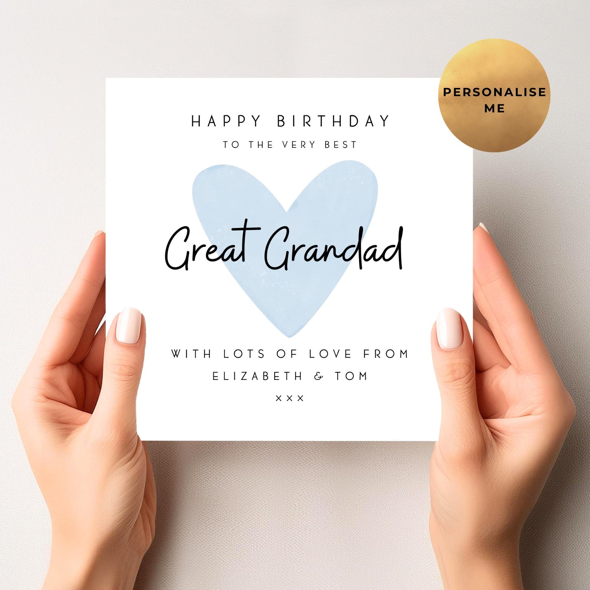 Celebrate a special great grandad with this personalised Birthday Card For Great Grandad. Crafted on high-quality cardstock with a smooth matte finish, this card provides ample space for your own sincere birthday wishes or let us personalise it for you, making it truly one-of-a-kind.