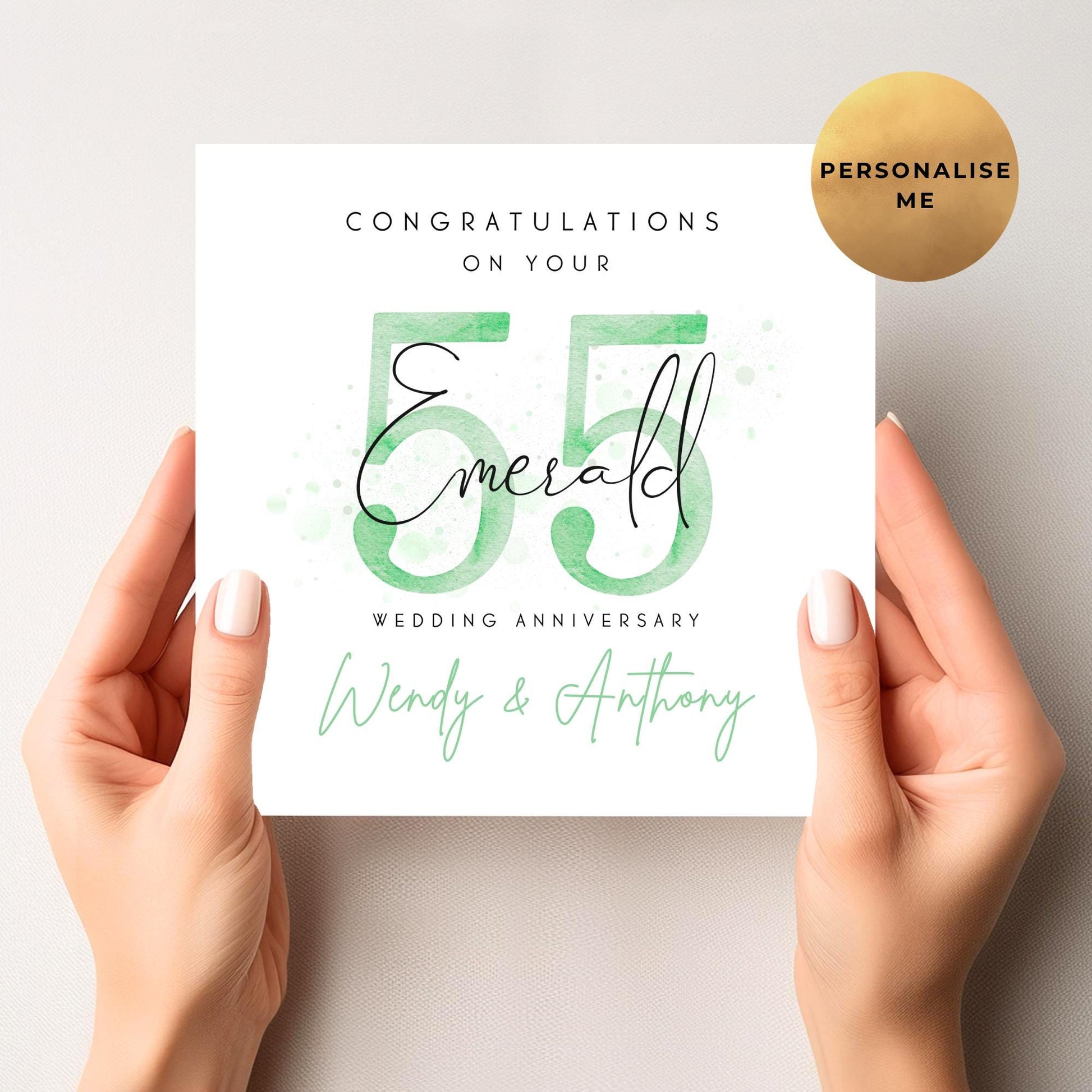Celebrate a milestone with this Emerald Wedding Anniversary Card, thoughtfully designed to honour 55 years of love and commitment. Personalised for a cherished couple, this 55th Wedding Anniversary card stands out with its elegant design and heartfelt message, making it a cherished keepsake.