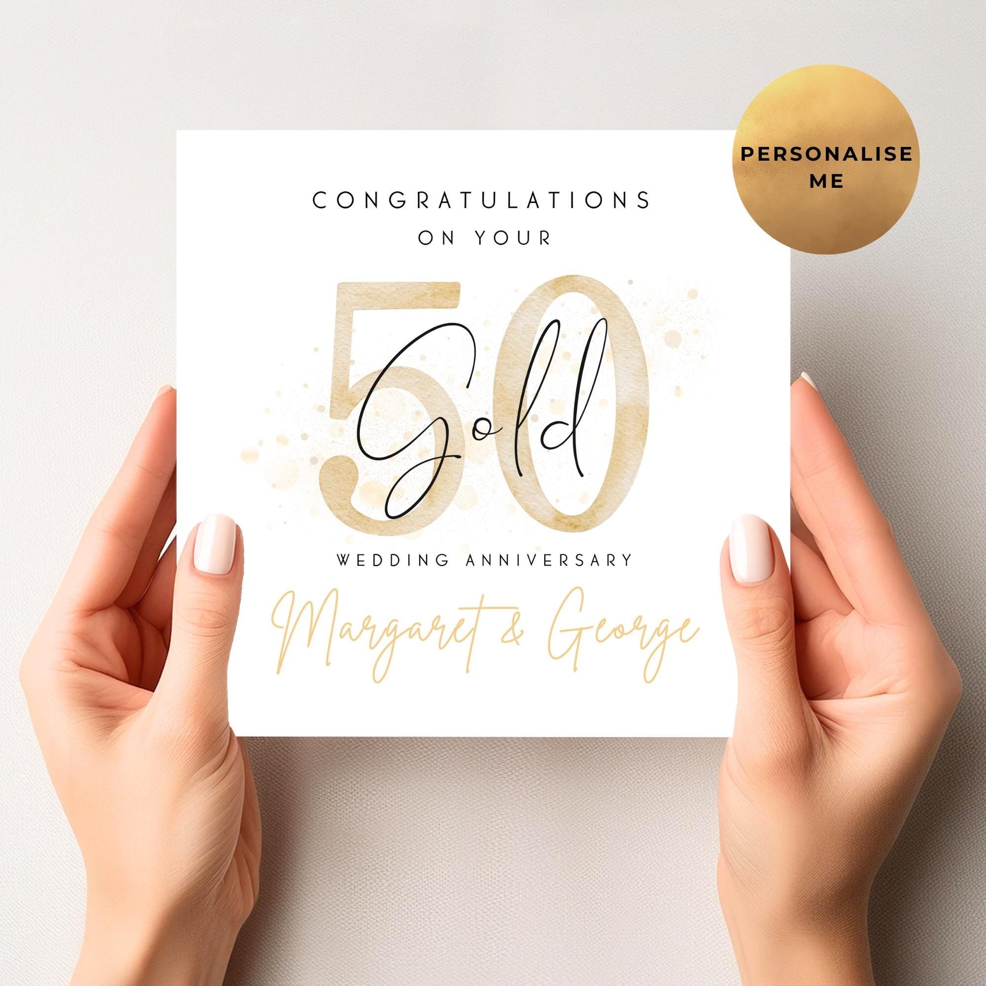 Celebrate a milestone with this Golden Wedding Anniversary Card, thoughtfully designed to honour 50 years of love and commitment. Personalised for a cherished couple, this 50th Wedding Anniversary card stands out with its elegant design and heartfelt message, making it a cherished keepsake.