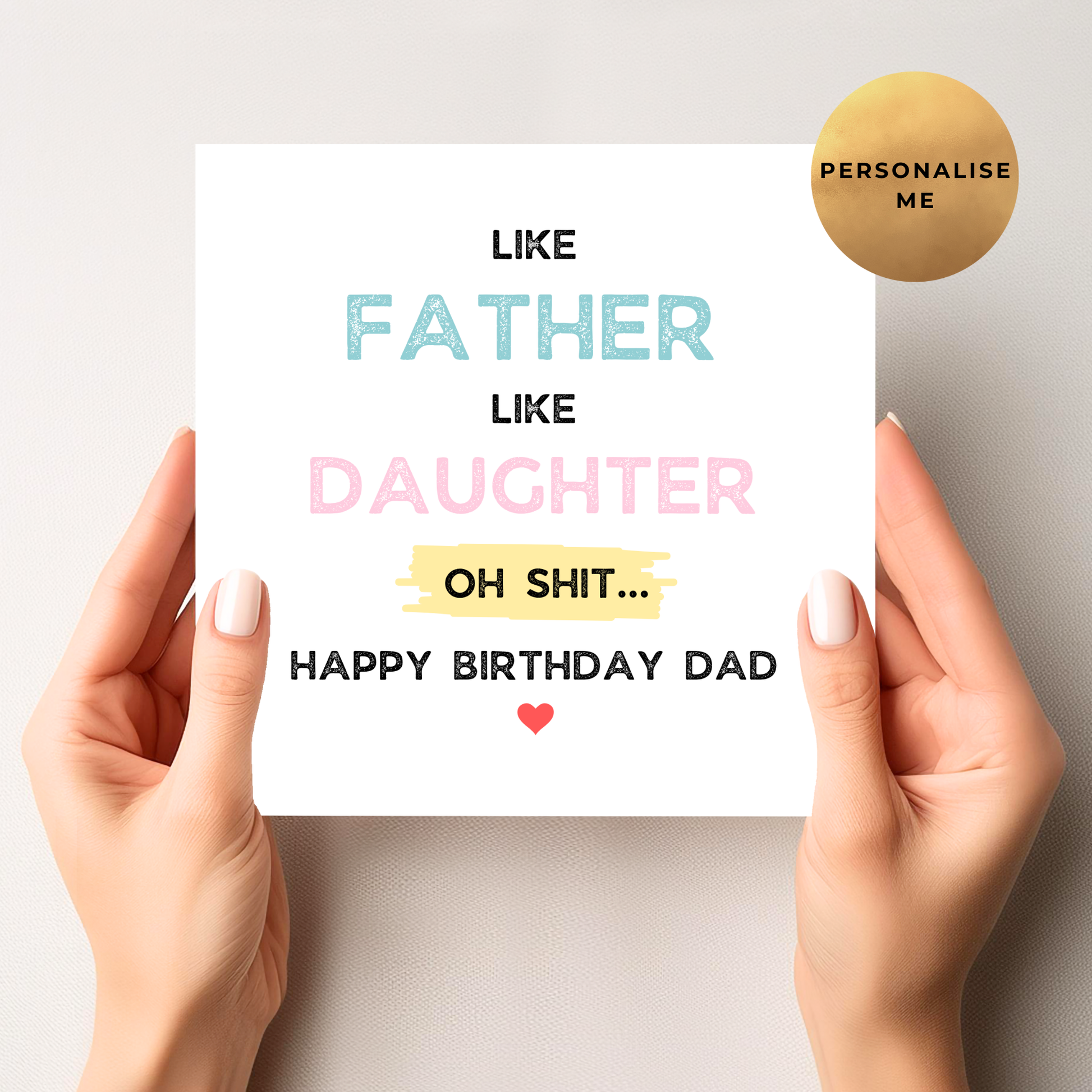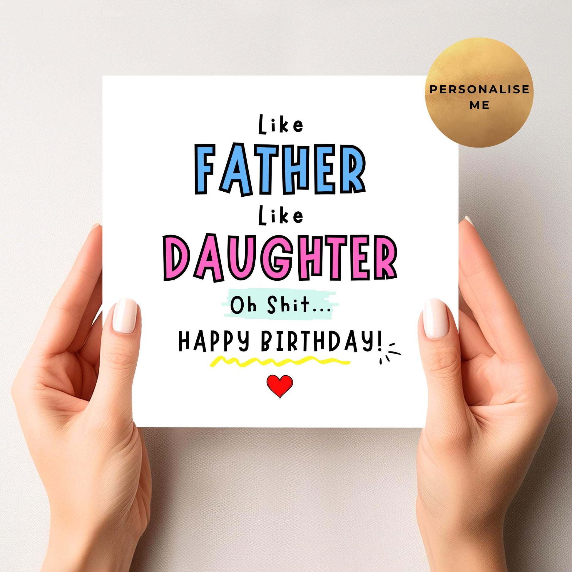 This cheeky card says it all: “Like Father Like Daughter… Oh Shit! Happy Birthday!” Guaranteed to make them laugh out loud.