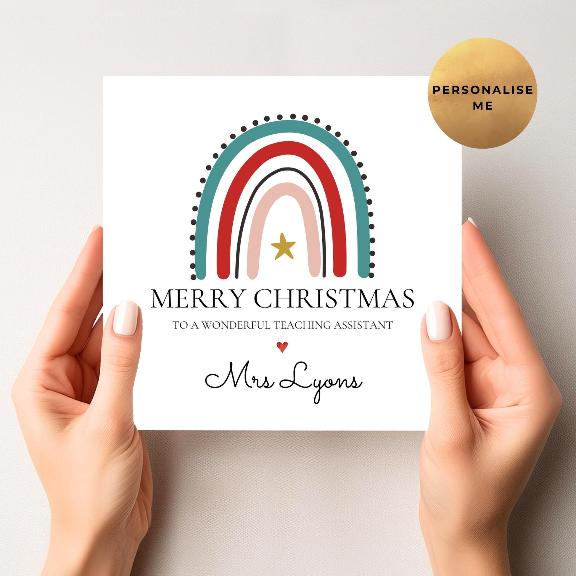 Show someone special you care with this Personalised Christmas Card designed with Teachers, Teaching Assistants and Keyworkers in mind.