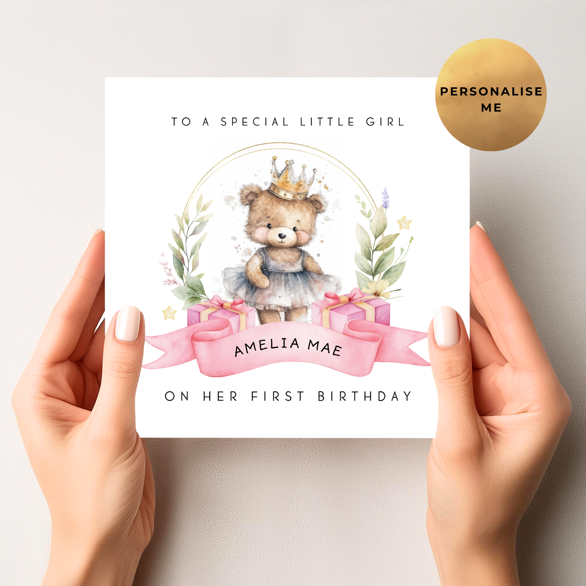 Celebrate your love ones birthday with our beautiful Personalised Teddy Ballerina Birthday Card, designed to capture the joy and love of this special occasion. Customise it with the little girl's name for a heartfelt touch that will be cherished for years to come—grab yours now and make their birthday unforgettable!