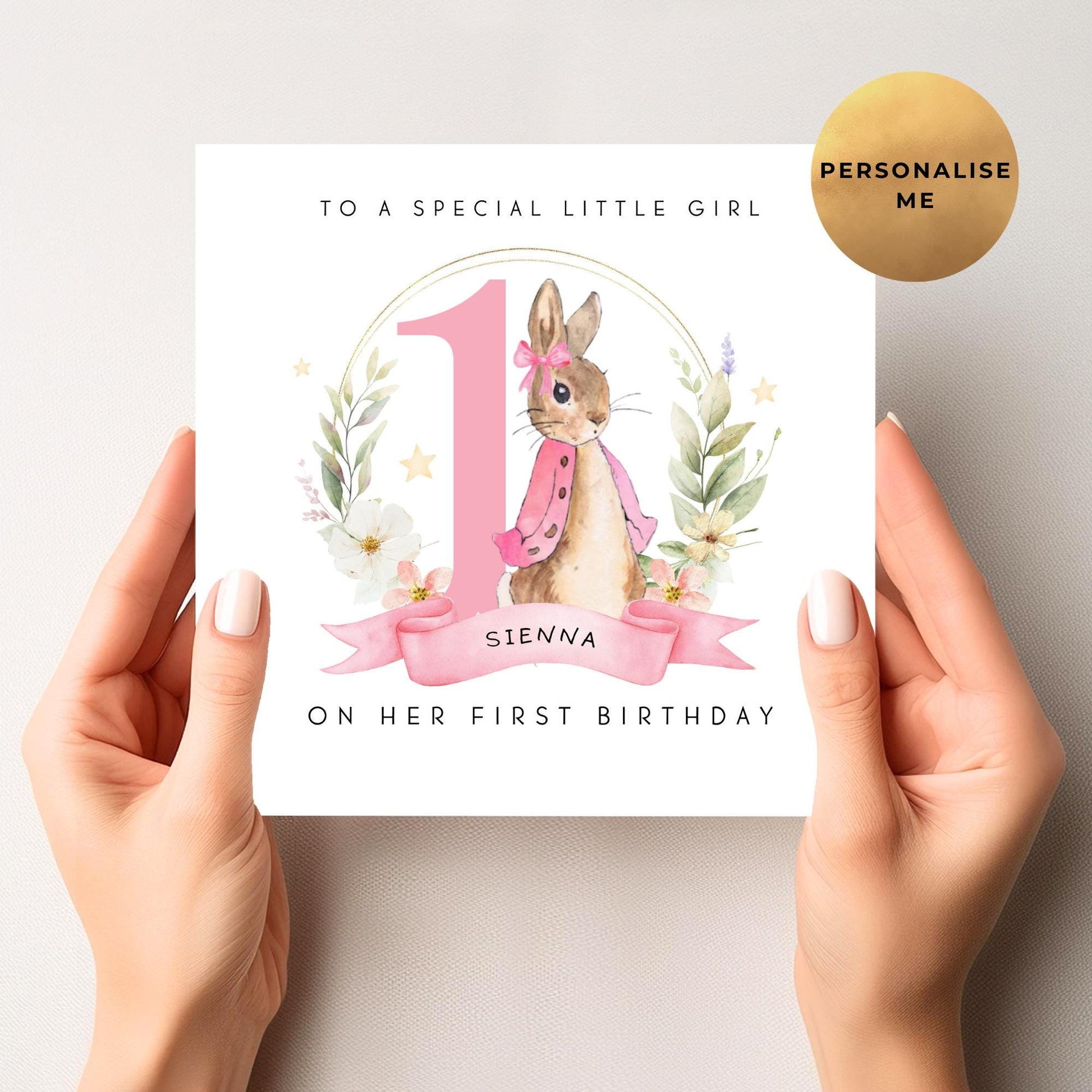 Make a little one's special day even more magical with our Peter Rabbit First Birthday Card, designed to bring enchanting smiles and heartfelt wishes! This customised Peter Rabbit greetings card is a delightful way to celebrate their birthday, so order now and make their dreams come true!