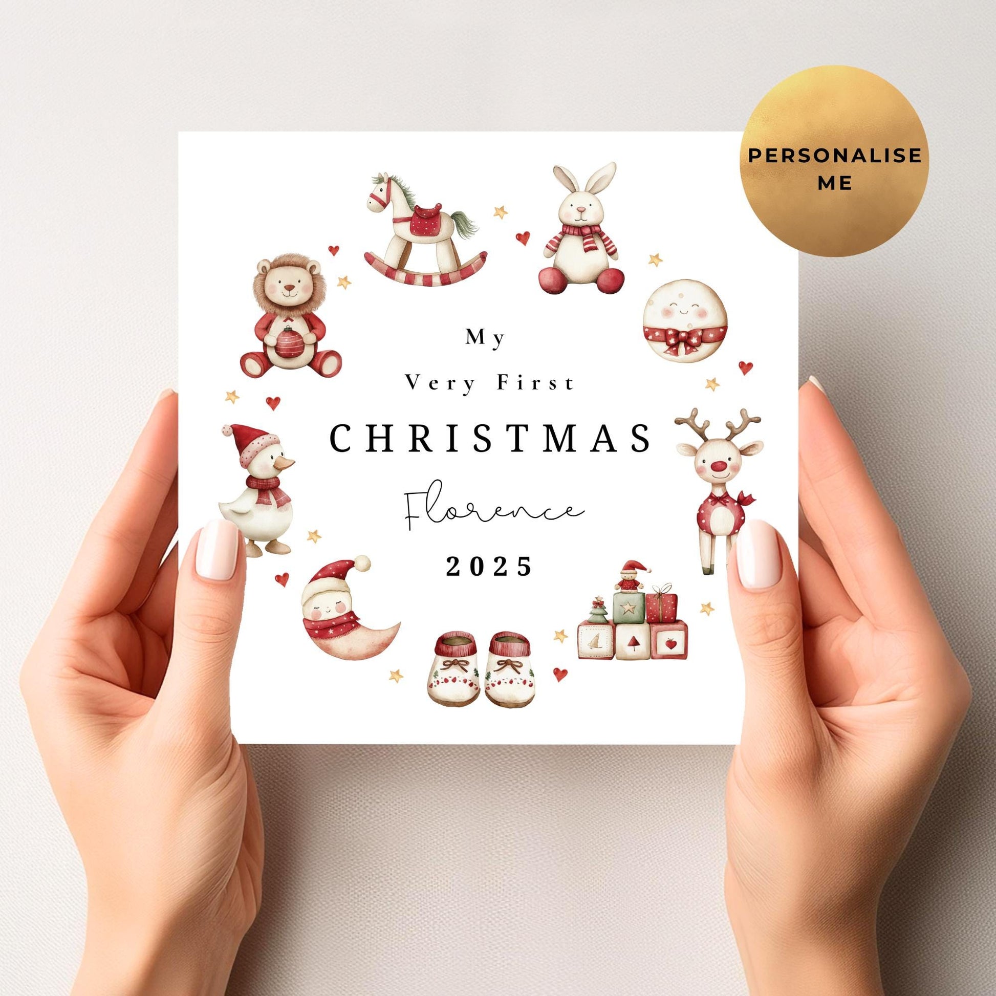 Make a little one's first Christmas even more magical with our Personalised First Christmas Card, designed to bring enchanting smiles and heartfelt wishes! This customised greetings card is a delightful way to celebrate their very first Christmas earth side, so order now and make this a perfect addition for any keepsake box!