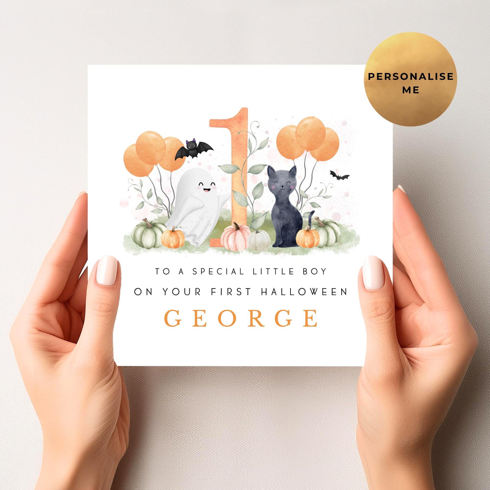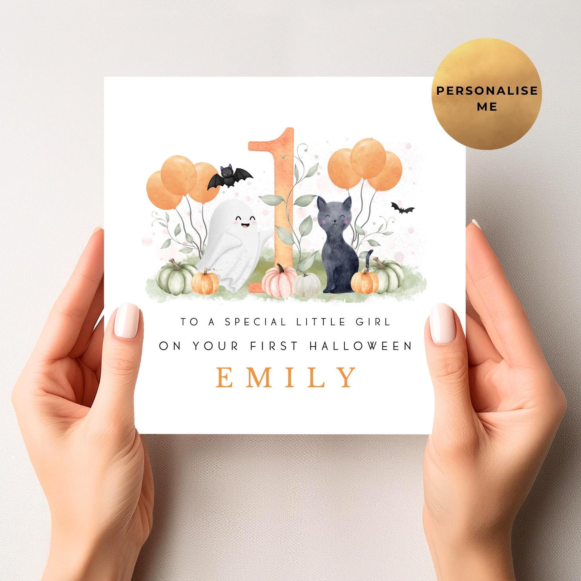 Celebrate a little one's first Halloween with our beautifully crafted Personalised First Halloween Card, designed to make this occasion unforgettable! With the ability to personalise this is perfect for any relation or friend.
