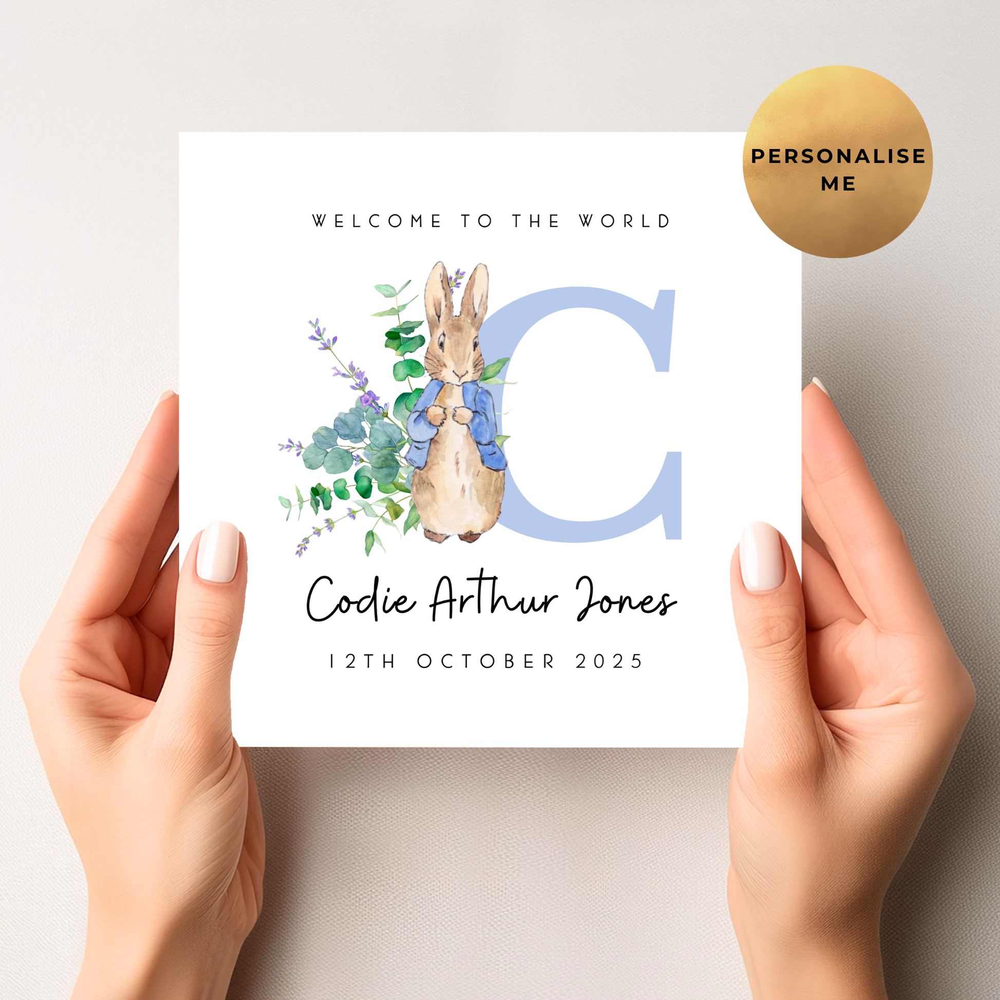 Celebrate the joy of welcoming a newborn with our heartfelt Personalised Peter Rabbit New Baby Card, beautifully customised for the proud new parents. Crafted with love and warmth, this card is perfect for conveying your congratulations and making a lasting impression on their special day—order yours now to share in their joy!