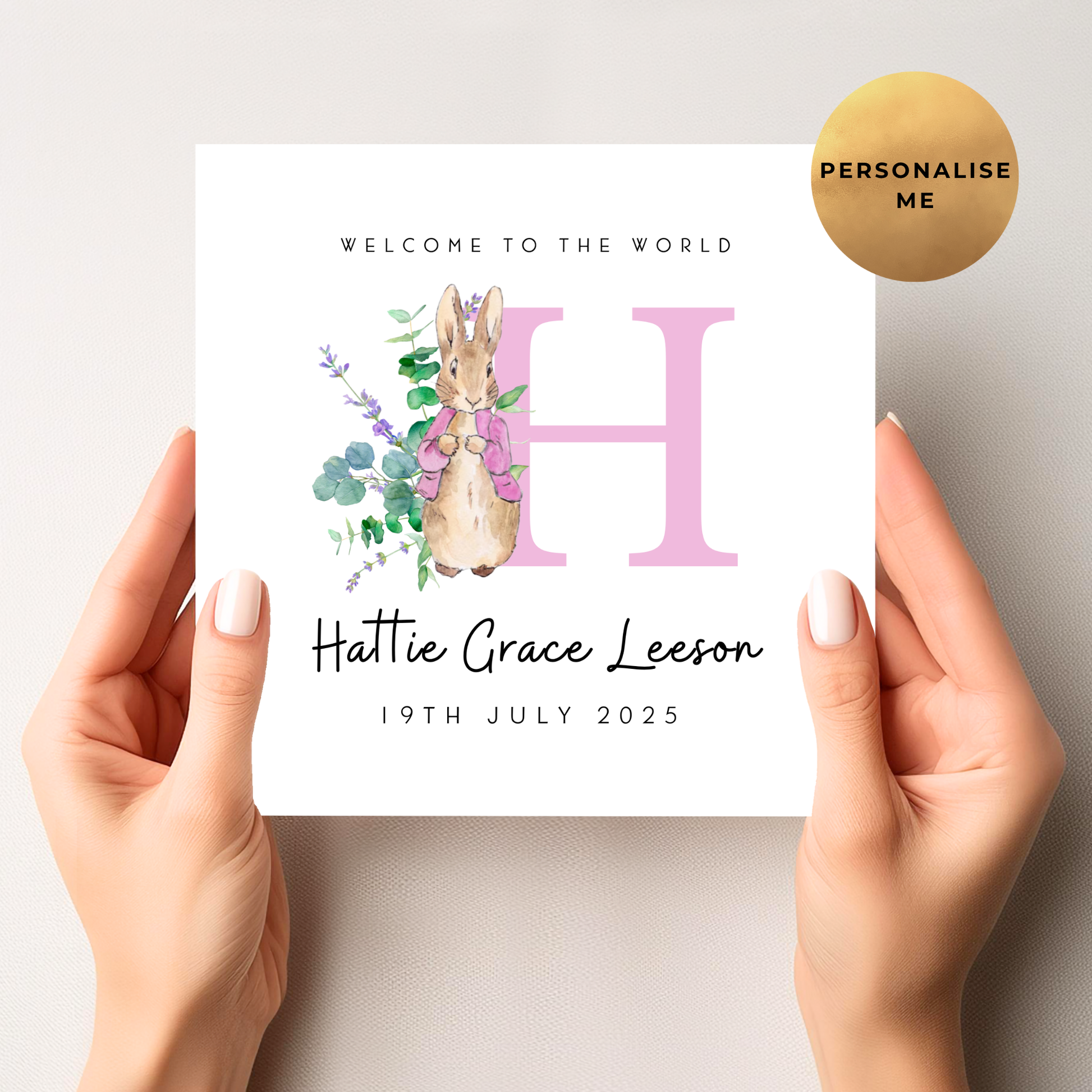 Celebrate the joy of welcoming a newborn with our heartfelt Personalised Peter Rabbit New Baby Card, beautifully customised for the proud new parents. Crafted with love and warmth, this card is perfect for conveying your congratulations and making a lasting impression on their special day—order yours now to share in their joy!