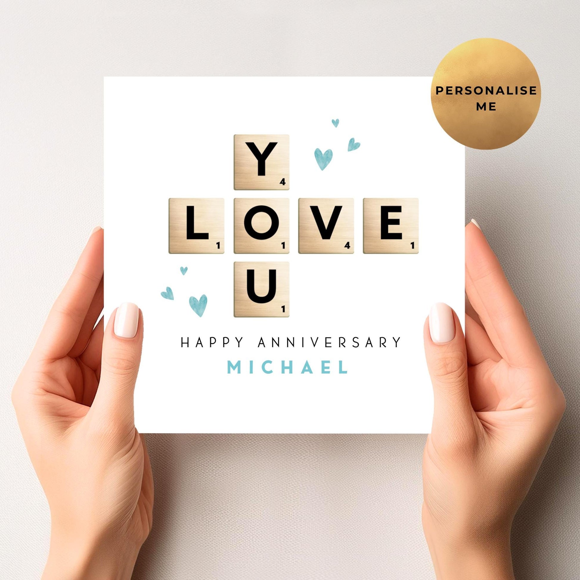 Celebrate your love with our Scrabble Anniversary Card - this heartfelt greetings card, perfect for him or her, features customisable touches that make it a cherished keepsake - order yours today and express your love in a truly memorable way!